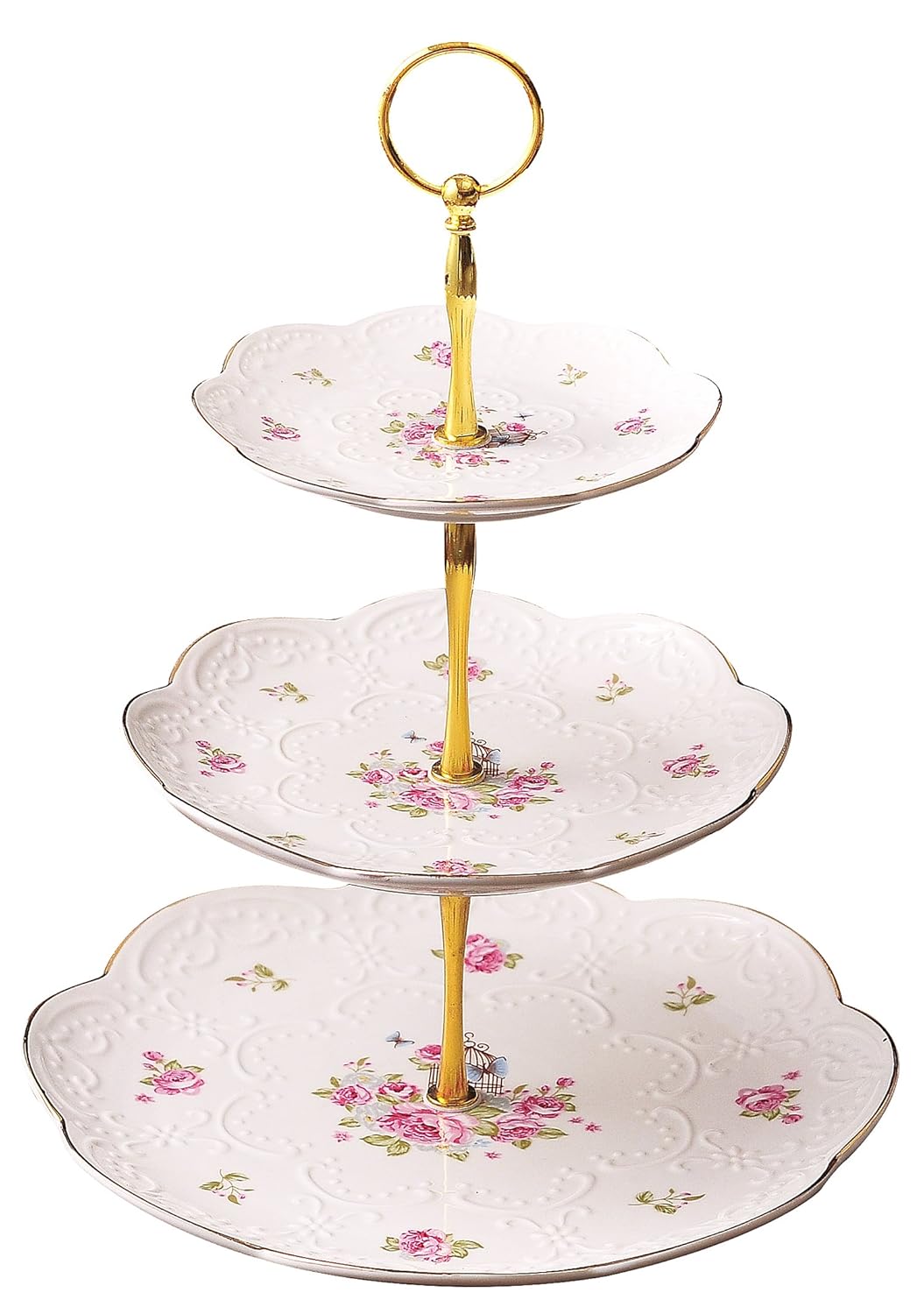 Jusalpha Elegant Embossed Porcelain 3-tier Cake Stand/ Cupcake Stand/ Tea Party Pastry Serving platter in Gift Box (FL-Stand 03) (3 Tier) is best for you