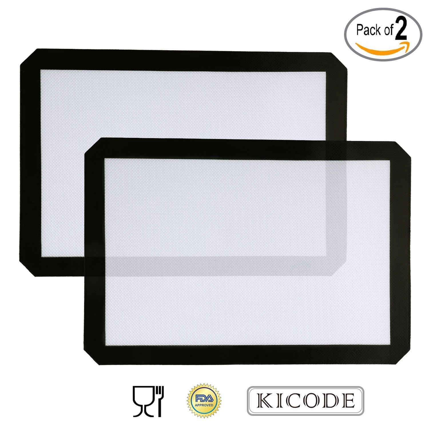 Kicode - 2x Silicone Baking Mat - Healthy Cooking - Food-Safe Certified - Oven Tray Liners and Cookie Sheets - Reusable( Black) is best for youColor:Black Kicode-Your Home House Keeper A varity of fuction - Suitable for all types of ovens (gas, electric, microwave and so on) No oil required - As an oven Lining. It allows you to cook without the use of fat or oils. This baking sheet saves money on parchment paper. Easy to clean - No more burnt trays and tins. It stays clean and the food comes off easily. Also suit for dishwasher safe. Non stick surface- Can also be used for rolling pastry, macaron, icing etc. High quality - These baking mats are made to FDA (USA) standards. They are easily cleaned leaving no stains. Safe - No sharp edges. Heat resistant to 250°C (482°F). Full size- 42cm x 29.5cm(16.54“*11.61”) How to use it *Place the Non-Stick Silicone Baking Mat in the base of your baking tray, oven dish, roasting tin or frying pan. *Pre-heat as usual. *Place your chosen food, without adding any fat or oil, onto the non stick silicone baking mat and cook as normal by your chosen method. *After use, just wash in warm soapy water or place in the top rack of the dishwasher. Maintenance Method *Do not heat the mat to above 250°C. *Do not put in direct contact with flames or heating elements. *Do not use sharp objects on the mat. Package Including 2*Stick Silicone 1*Package box ******What are you waitting for?Go for it********