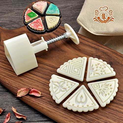 Moon Cake Mold With 5 Stamps - Mid Autumn Festival DIY Decoration Press 50g White is best for youInstructions: Round Size(50g):6*14.5cmMaterial: ABS/BPA free , Food Grade! Make great birthday gifts, and presents to brighten any ordinary day. Have your own cake mold, enjoy the fun of DIY, take 5 different kinds of flowers home.