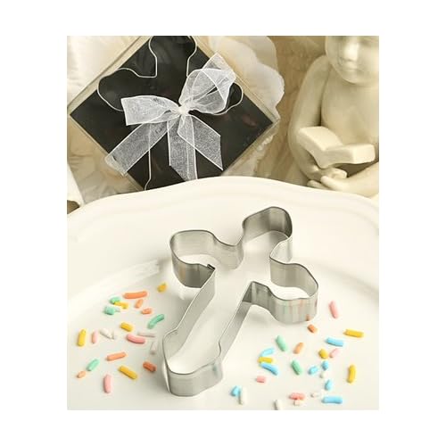 Useful cross design cookie cutters, 1 is best for youItem Package Quantity:1 With these useful cross design cookie cutters your guests can make cookies baked with love Looking for a simply sweet way to say that you feel blessed on a special day? At Fashioncraft, we understand that favors for religious occasions, like First Communions, Christenings and more, are meant to reverently do exactly that. So, with this cookie cutter, we took the beloved symbol of the cross and made it into a useful keepsake you'll be proud to share. Description and details: Each measures 3 1/4' x 2 1/4' Tin metal cookie cutter Made in the classic shape of the cross A kitchen favor that keeps on giving A spirited choice as religious event favors - girl or boy Packaged atop a black insert in a clear topped box Box is wrapped and tied with a white organza ribbon
