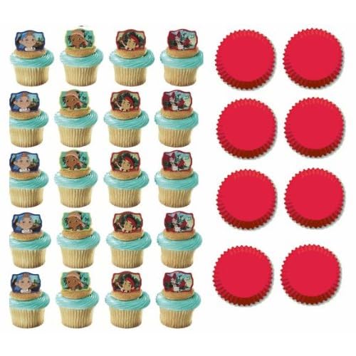24 Jake and the Neverland Pirates Cupcake Decoration Topper Rings with 24 Red Baking Cups is best for youPerfect for a party of 16.