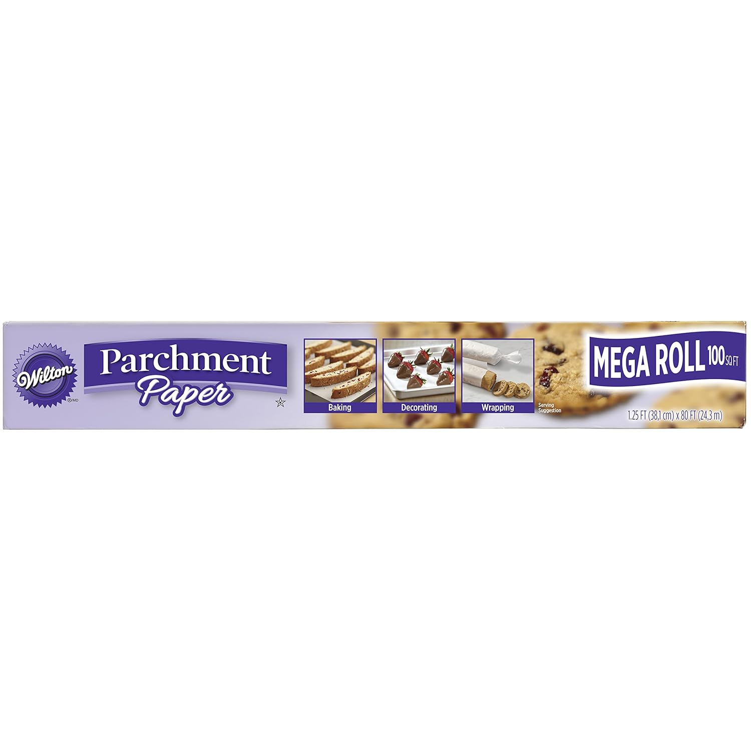 Wilton 415-3247 Non-Stick Mega Parchment Roll, 100 sq. ft., White is best for youUse Wilton Non-Stick Parchment for grease-free, easy-clean baking and roasting. Line baking pans and cookie sheets with silicone-treated non-stick parchment for great results. It's perfect when baking cookies, cakes and brownies or for savory recipes, such as fish, chicken and vegetable. Non-stick means there's no need for spraying or greasing the pan, saving on cleanup time. Food releases easily with no added grease. For roll-out cookies, put a sheet below and on top of dough, making roll-out easy with less mess and easy to transfer to your cookie sheet. Use sheet again for rolling out the next batch! You can also use to wrap baked goods, make healthy parchment-wrapped fish or chicken recipes or use to cool cookies. Also great for use when making dipped candies or chocolate-covered treats. Oven safe to 450 DegreeF, parchment is great for conventional ovens, microwaves and the freezer. Professional grade. Includes 1.25 ft. x 80 ft. (38,1 cm x 24,3 m).