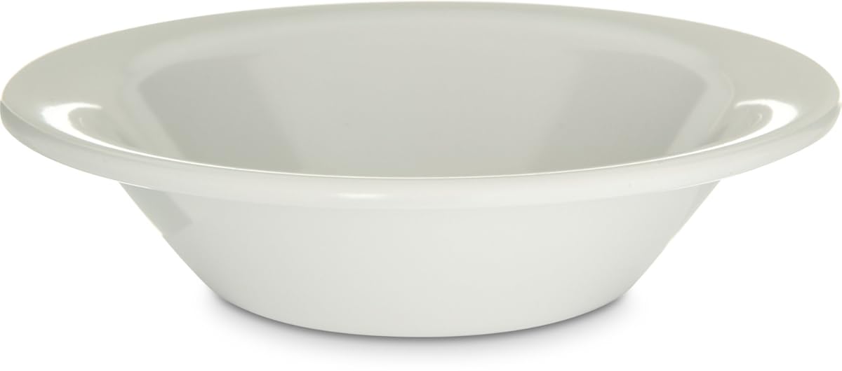 Carlisle KL80002 Kingline Melamine Rimmed Fruit Bowl, 5 oz. Capacity, 1.26", White (Case of 48) is best for youThis Carlisle KL80002 Kingline 5 oz. white bowl is a rimmed fruit bowl for home and commercial food service use. It is made of melamine resin for durability and resistance to stains, scratches, and breaking. This bowl is suitable for temperatures up to 212 degrees F, dishwasher-safe, and free of BPA (Bisphenol A) to address food safety concerns raised by the U.S. Food and Drug Administration (FDA) and other organizations. It meets NSF International standards for use in food handling and processing, and is 1.26' high.Carlisle manufactures food service equipment and supplies and sanitary maintenance tools and supplies for commercial, industrial, and institutional facilities. The company, founded in 1954, is headquartered in Oklahoma City, OK.