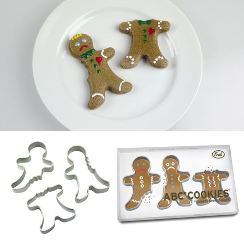 Fred and Friends ABC (Already Been Chewed) gingerbread MAN cookie CUTTERS holiday PARTY NEW is best for youSet of 3 cookie cutters Each measures approx. 2.5' W x 3.5' L Made of luxurious cast aluminum with no seams or sharp edges Gingerbread recipe included Packaged in a cute, clear gift box Makes maimed gingerbread men with 'bite marks' Even better, decorate them with a red shirt and blue pants for hilarious 'Mr. Bill' cookies Don't forget the sad face !!