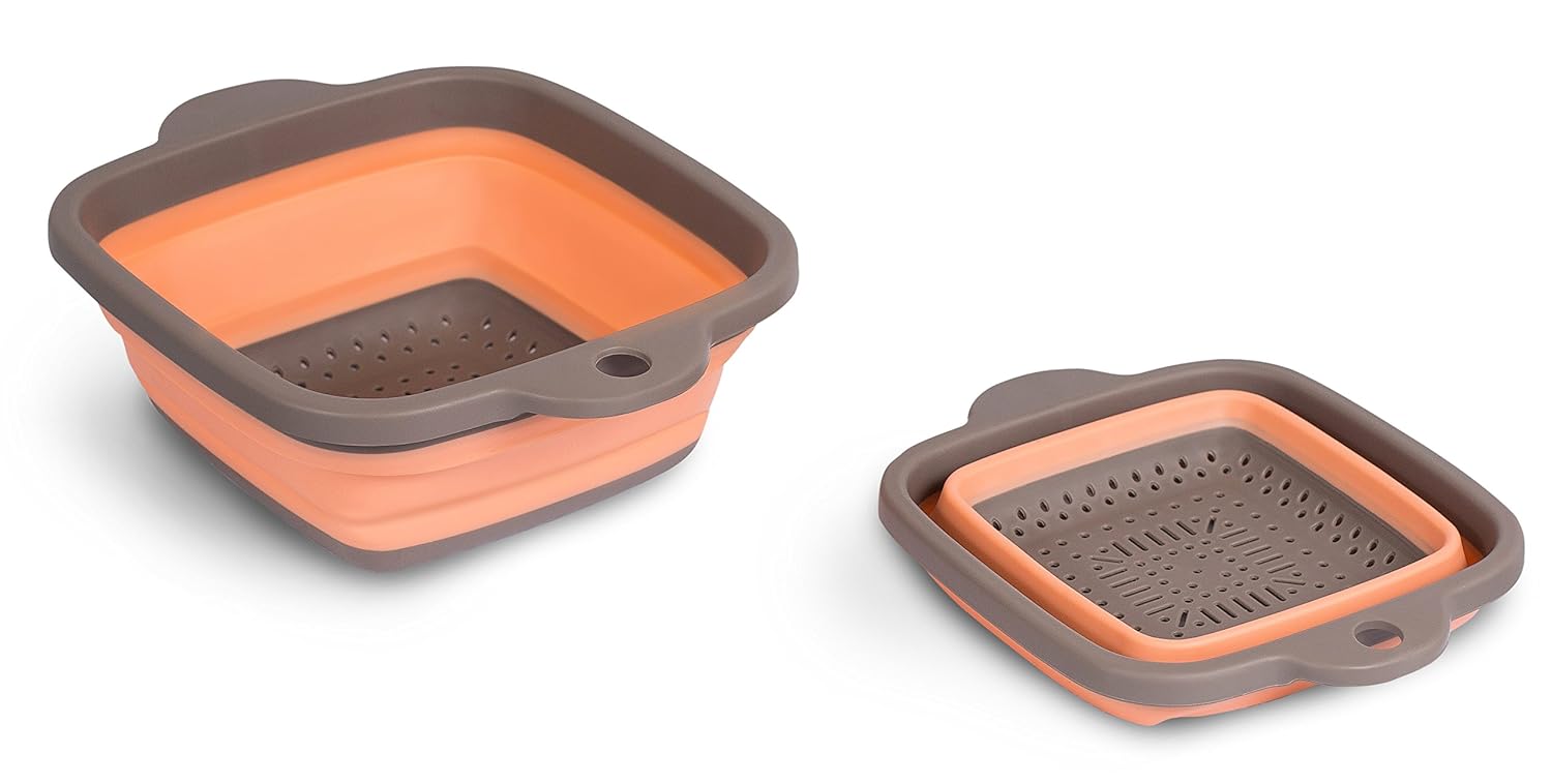 Internet’s Best 2 Piece Collapsible Colander Strainer Set | Self Draining Pasta Bowl | Kitchen Food Washing Strainer | Comfort Grip Handles | Small and Large is best for youThis collapsible strainer set is a huge kitchen helper, allowing you to strain fruits, veggies, pastas and more. Conveniently collapse for easy storage. Set includes a 7.5' diameter and 6.25' diameter strainer. Easy care - strainers are dishwasher safe.