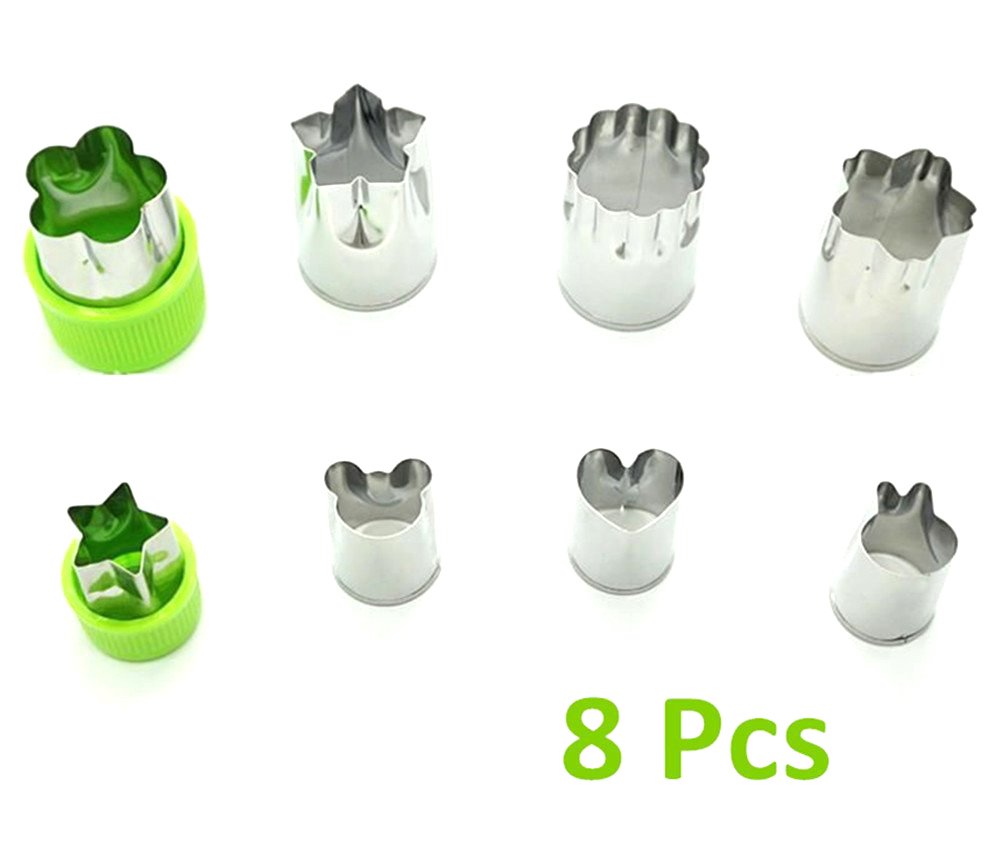 • The YEME 8 Pcs Food Grade Stainless Steel Vegetable Fruit Biscuit Cutter Mold Tool with Flower and Cartoon Shape-Green is a