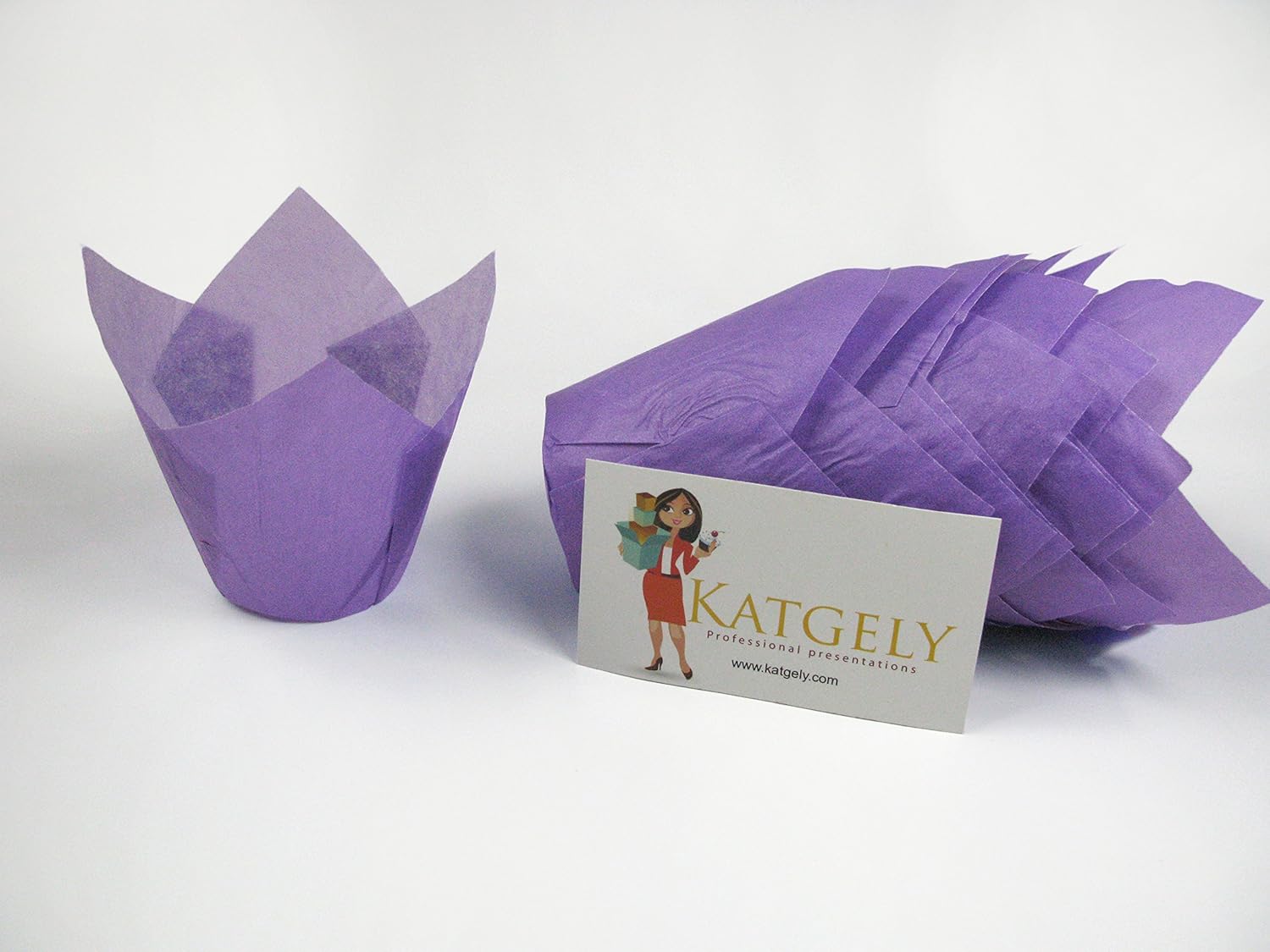 • The Katgely Purple Tulip Cupcake Liners Medium Height 2.5 to 3.5 Inches Tall (Pack of 200) is a