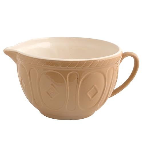 the Mason Cash Batter Bowl, 2-Quart Other sifters, like squeeze handle models, use two or more mesh screens that trap pellets of ingredients, clogging with clumps and lumps, making the sifter a pain to clean. The Bellemain Sifter makes sifting and cleanup easy breezy. It wipes clean in seconds.Coarse ingredients like oat bran and almond meal can be a challenge for lesser sifters. The Bellemain Sifter can process them easily without any added pressure and then moves on to confectioners sugar and cocoa powder without missing a beat. Aerates your dry ingredients smoothly to give you lighter, fluffier baked goods.This set has 2 different sized mixing bowls with pour spout to make pouring of milk into the pancake mix an easy process. Pour any liquid into the bowl, from orange juice, milk and water to syrups, melted butter and margarine!The splatter proof design will allow you to mix all kinds of textures from liquid till more dry and solid ingredients without making a mess around.You can prepare cookie dough, meat marinades, brownies, pancake mix, whip up cream, knead bread dough, make salads and so many more!Mason Cash Batter Bowl, 2-Quart is best for youColor:Cane Mason Cash has been the choice of home cooks and bakers for centuries. This Cane Bakeware is made of white and cane glazed pottery sometimes known as ‘yellow ware’ due to the color of the local clay. It has a 2-quart capacity and measures 9.75 by 7.5 by 5 inches, practical for today’s kitchen, whether professional or in the home. Part of the cane measuring and mixing collection, it coordinates perfectly with other cane products. Made of high quality, chip-resistant stoneware, with an ear handle for easy one-hand grip and lifting. It is elegantly embossed with simple patterns and created with an easy-pour rim design or nozzle. The white glossy interior makes it easy for users to see the color and consistency of mixture ensuring the perfect result every time! The design of the Mason Cash cane products has endured the test of time and has become something of a design classic. Mason Cash is fundamentally rooted in its English heritage. Over the centuries, they have developed a great understanding of the requirements and expectations of cooks, producing innovative, functional, effective kitchenware and utilizing the best quality materials possible to produce the very best items that exceed consumers’ expectations. Designed in U.K., Manufactured in Portugal.