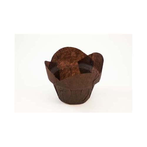 • The Novacart Brown Tulip Baking Cup--Round-Tip Step (150, Bottom diameter 2 inch, height 2 to 2.88 inch) is a