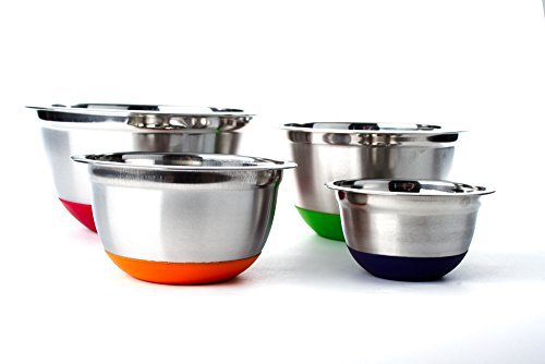 Why Use Stainless Steel German Mixing Bowl 4 Pc set w/ Non-Skid Silicone Base (MultiColor Bottoms) ?