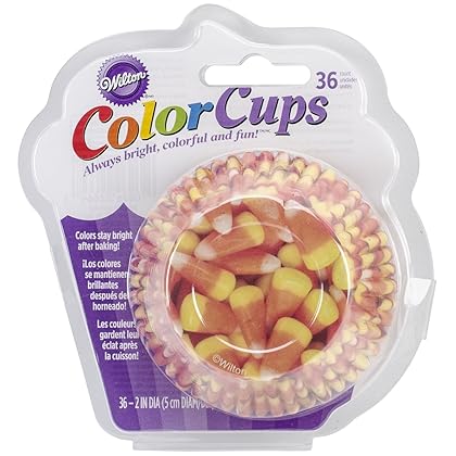 • The Wilton Clearcup Baking Cups, Standard, Photo Candy Corn, 36 Per Package is a