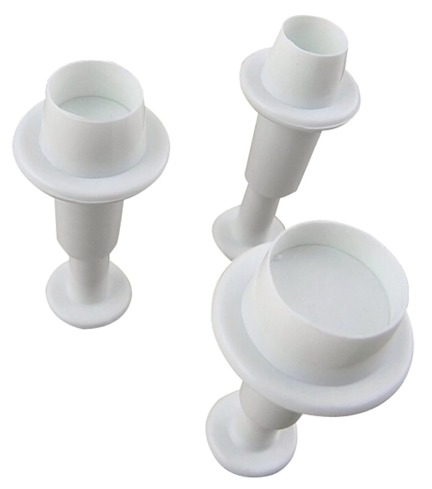 • The BleuMoo New 3x Round Fondant Cake Decorating Sugarcraft Plunger Cutters Tools Mould Mold is a