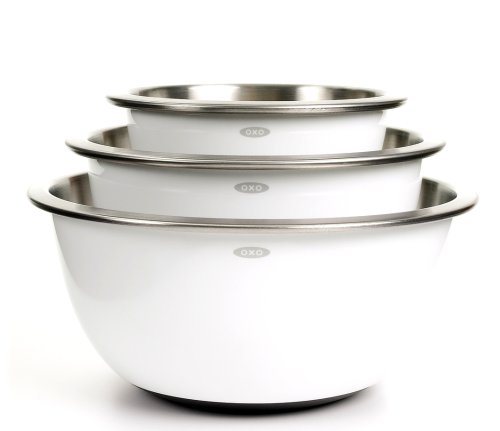 • The OXO Good Grips 3-Piece Stainless-Steel Mixing Bowl Set, White is a