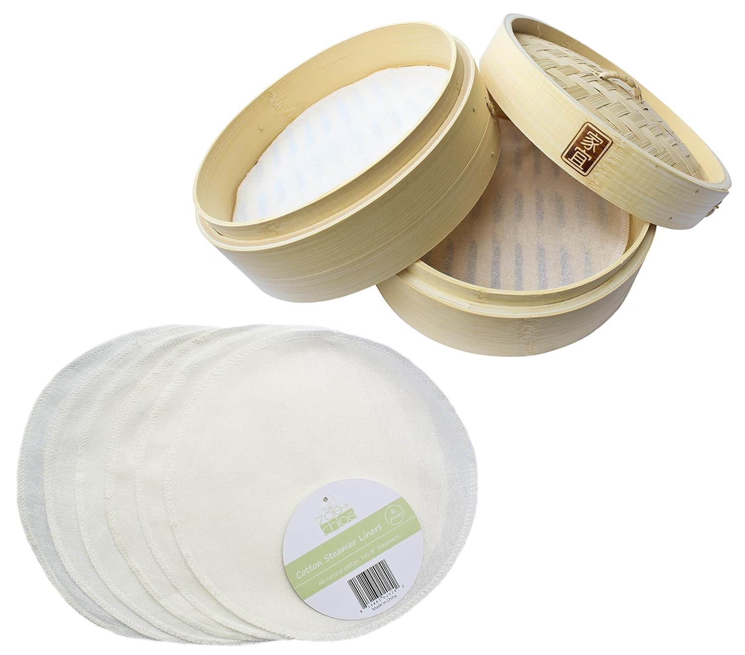 • The Zoie + Chloe 100% Cotton Reusable Liners for Bamboo Steamers - 6 Pack is a