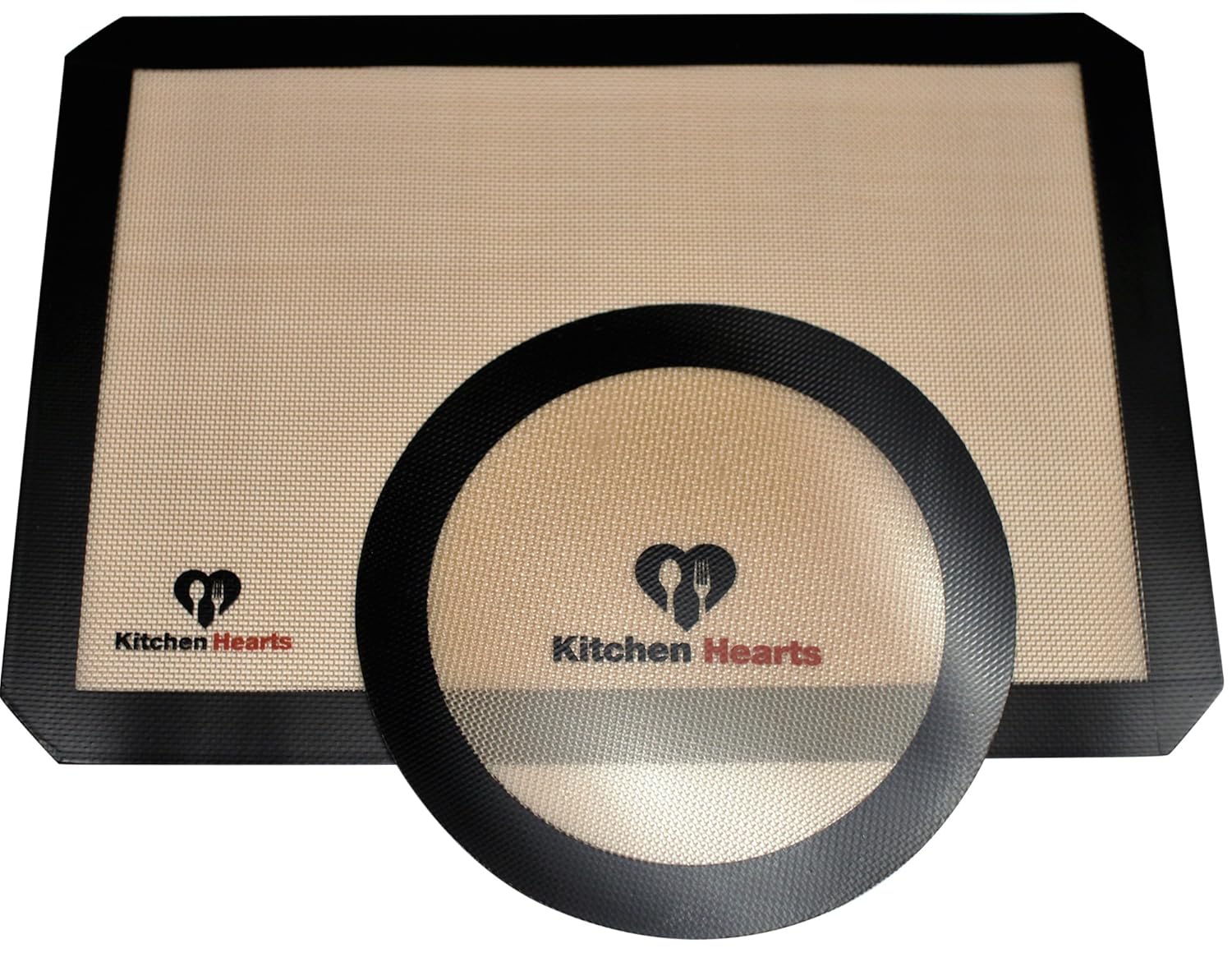 • The Nonstick Silicone Baking Mat Set [2-pack] Half-sheet Baking Pan Size & Pizza Mat - No Messy Oils - Bake Cookies, Vegetables, Pizzas, Meats, and More - Simple and Easy Clean-up is a
